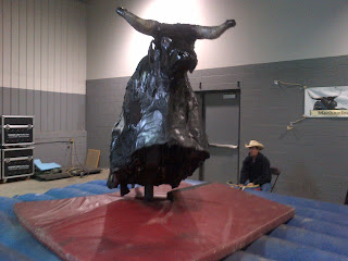 I was intrigued by this bull that was just hanging around as I walked to another area of the show. After I took this picture, the man in the photo informed me that this was the bull that Heath Ledger rode in the movie Brokeback Mountain. I seriously considered climbing up on that air-filled platform to touch the place where Heath Ledger's back side had been. Sigh. I decided against it, valuing my front teeth more than the chance to touch great(behinded)ness. Curse you, klutzy body!